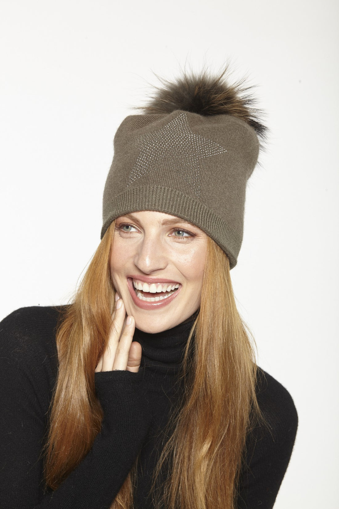 Rhinestone Star Angora/Fox Pom Hat