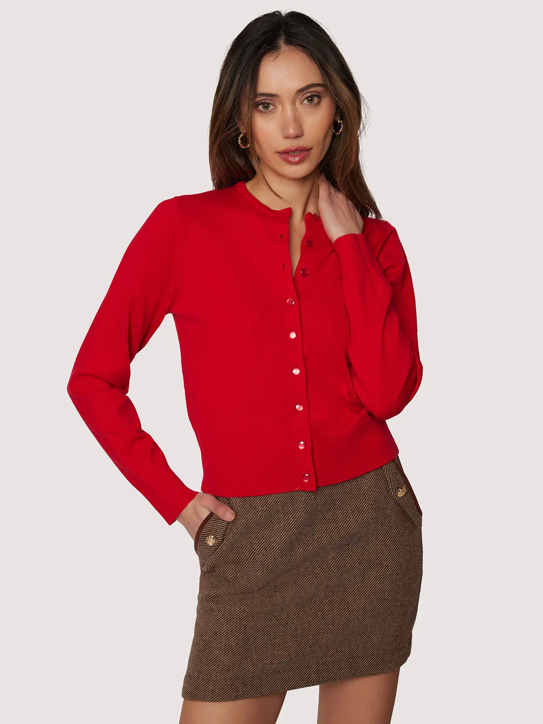 Scarlet Cardigan W/ Pearlized Buttons