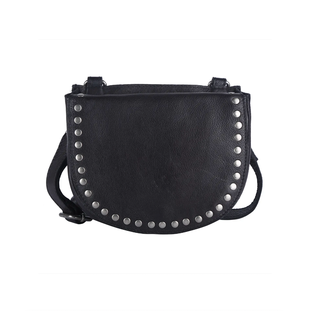 Half Moon Leather Crossbody w/ Gun Metal Rivets