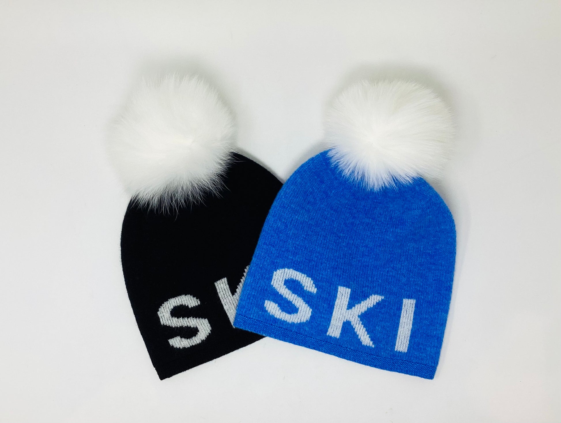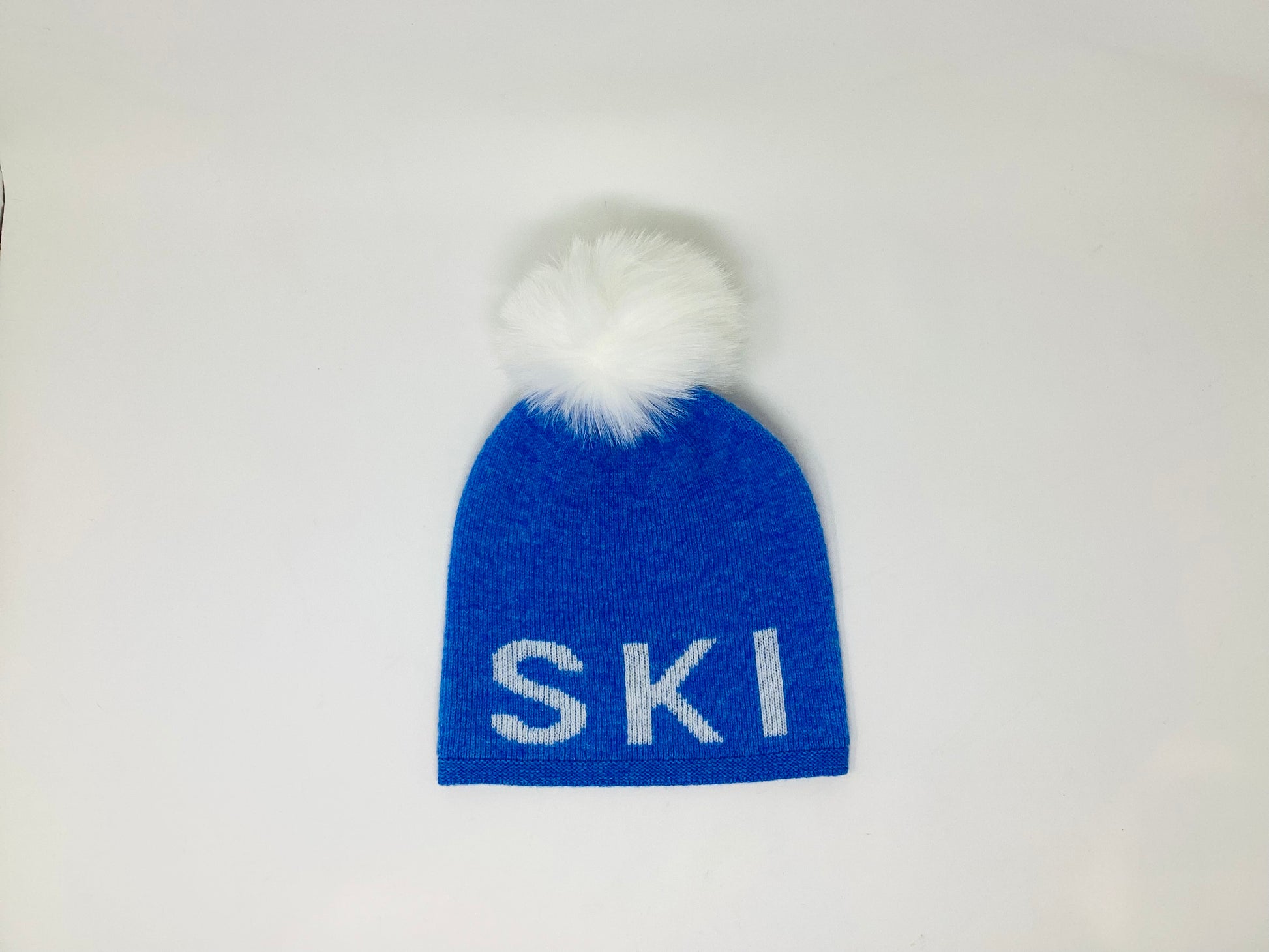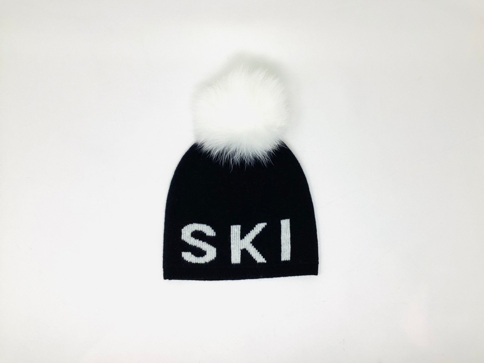 Merino SKI Beanie W/White Fox Pom