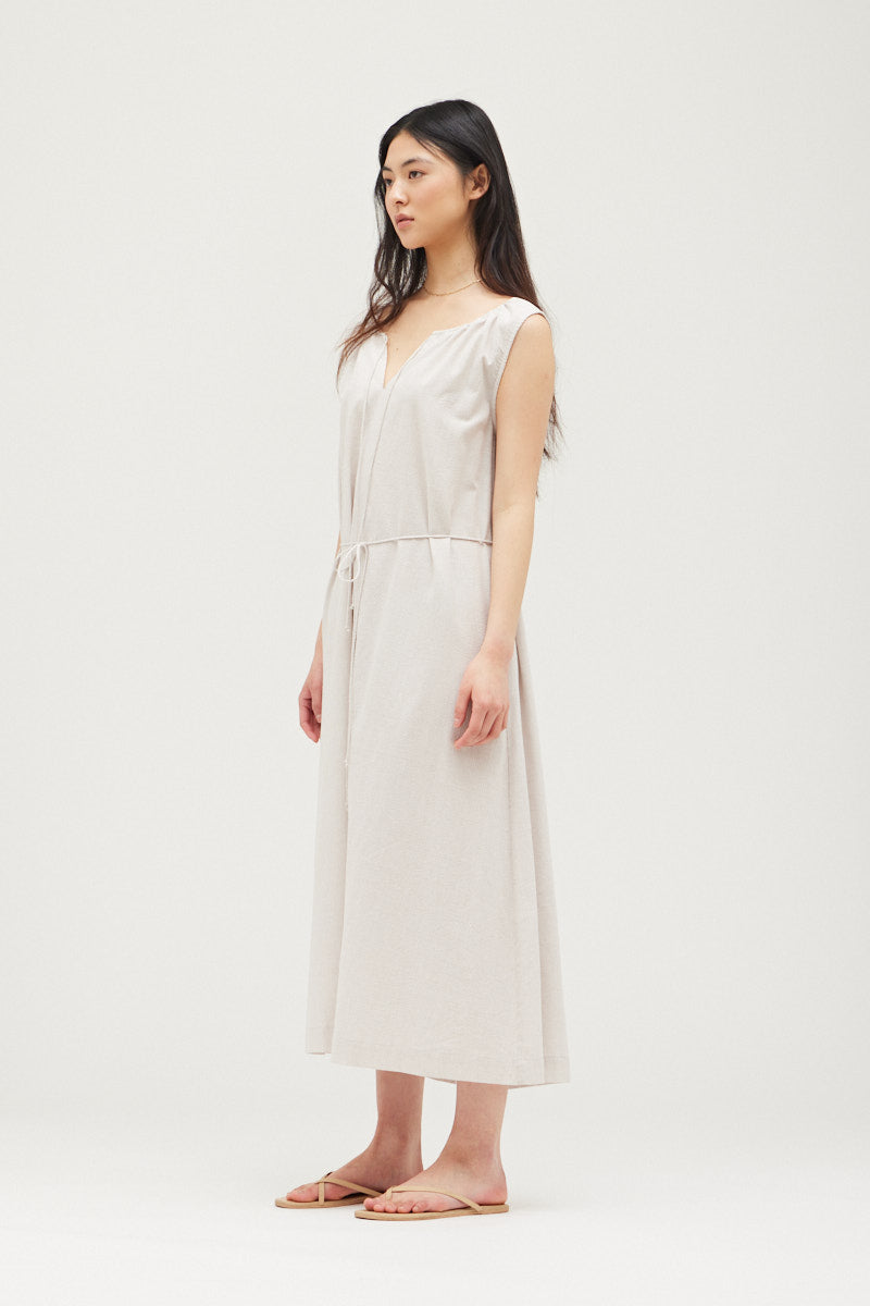Miniature Stripe Drawstring Cotton Maxi Dress