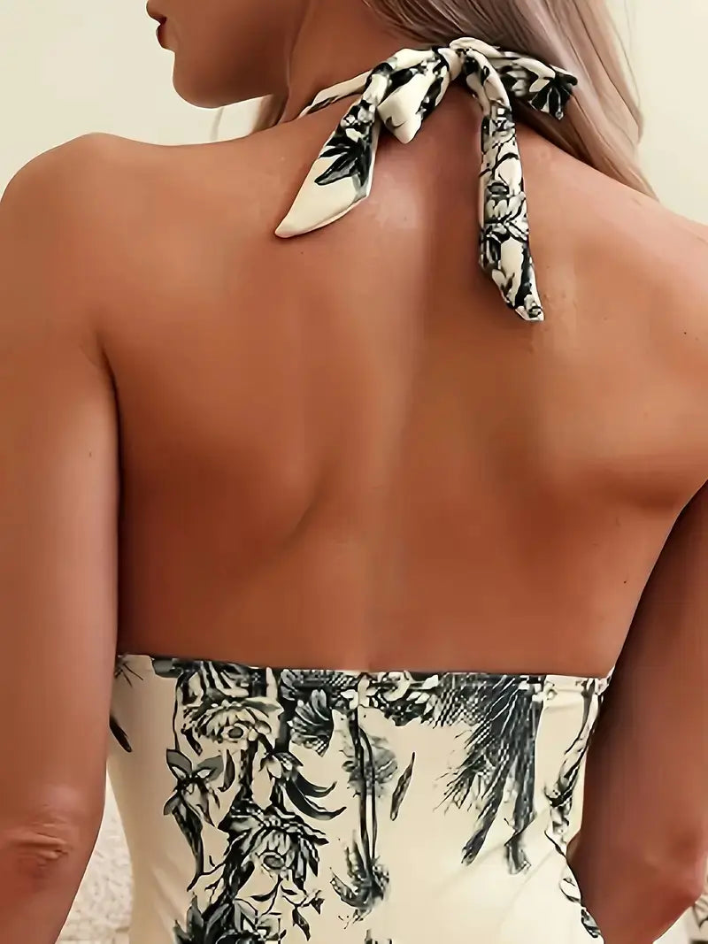 Palm Print Halter Bathing Suit