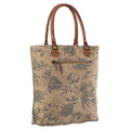 Hand-washed vintage print 100% cotton canvas fabric. High quality Genuine Top Grain Leather. Durable zipper closures. Size/Dimensions: 18in (H) X 16in (W)