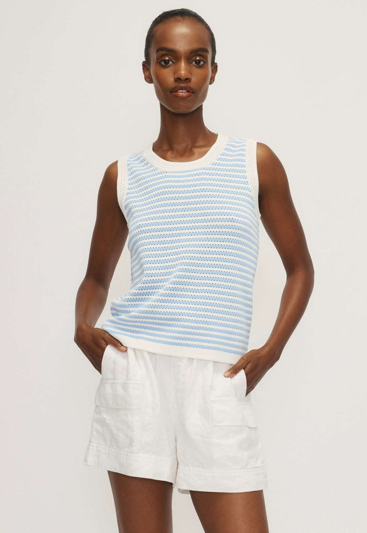 Viscose Sleeveless Striped Knit Top